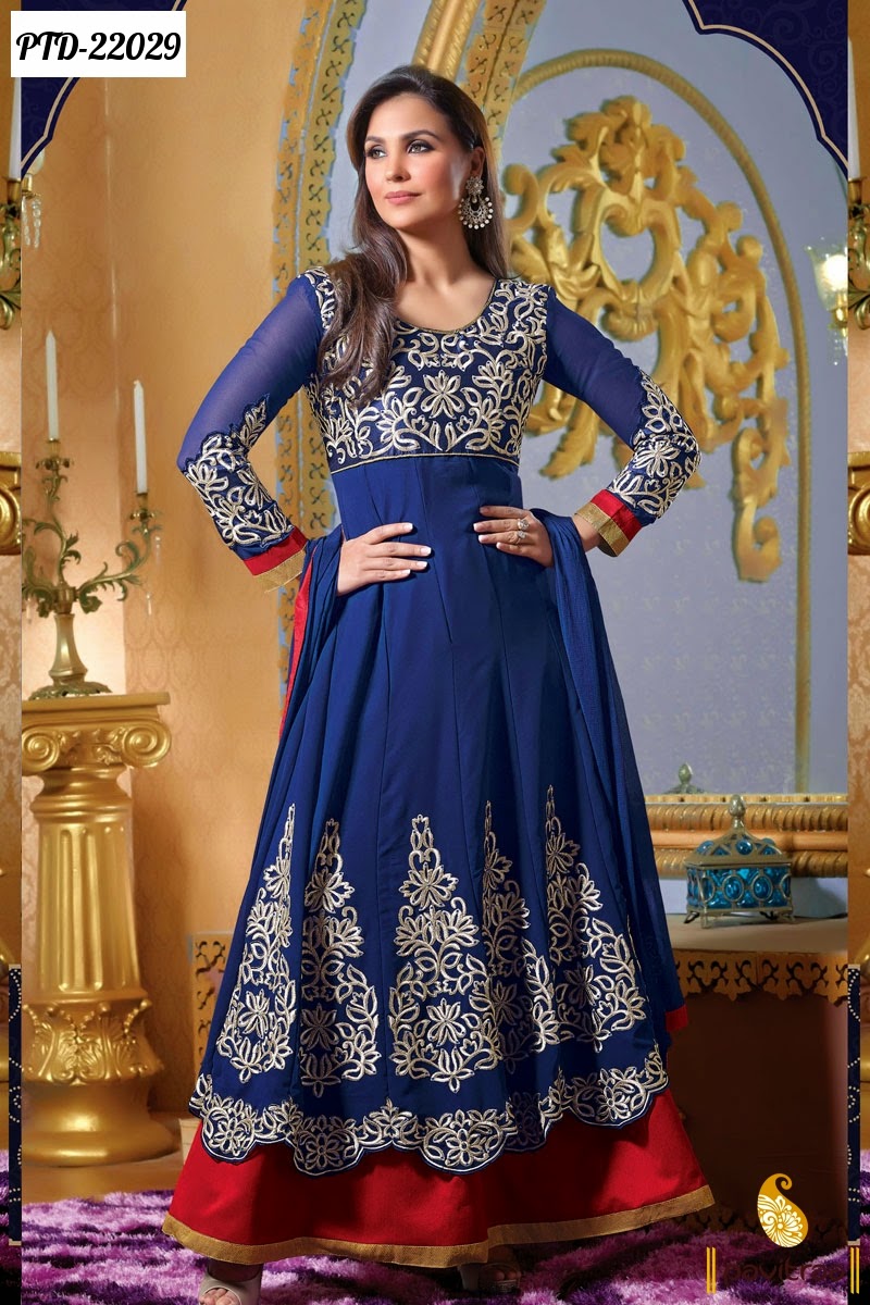 Mesmerize and extraordinary your look just like bollywood actress Lara Dutta style floor length Anarkali Salwar suit with elegant color combinations. Stunning body is decorated with zari, resham embroidered